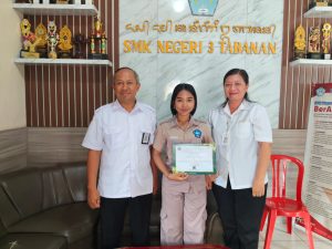 Selamat atas prestasi juara lomba yang diraih oleh Ni Kadek Ayu Ratih Maharani. Semoga ke depannya siswa SMKN 3 Tabanan selalu dapat mengharumkan nama sekolah.